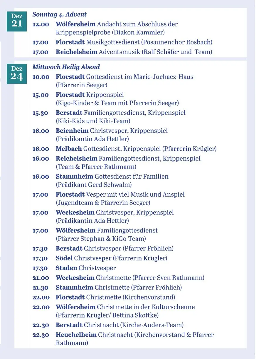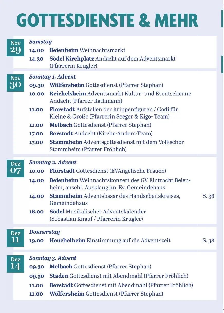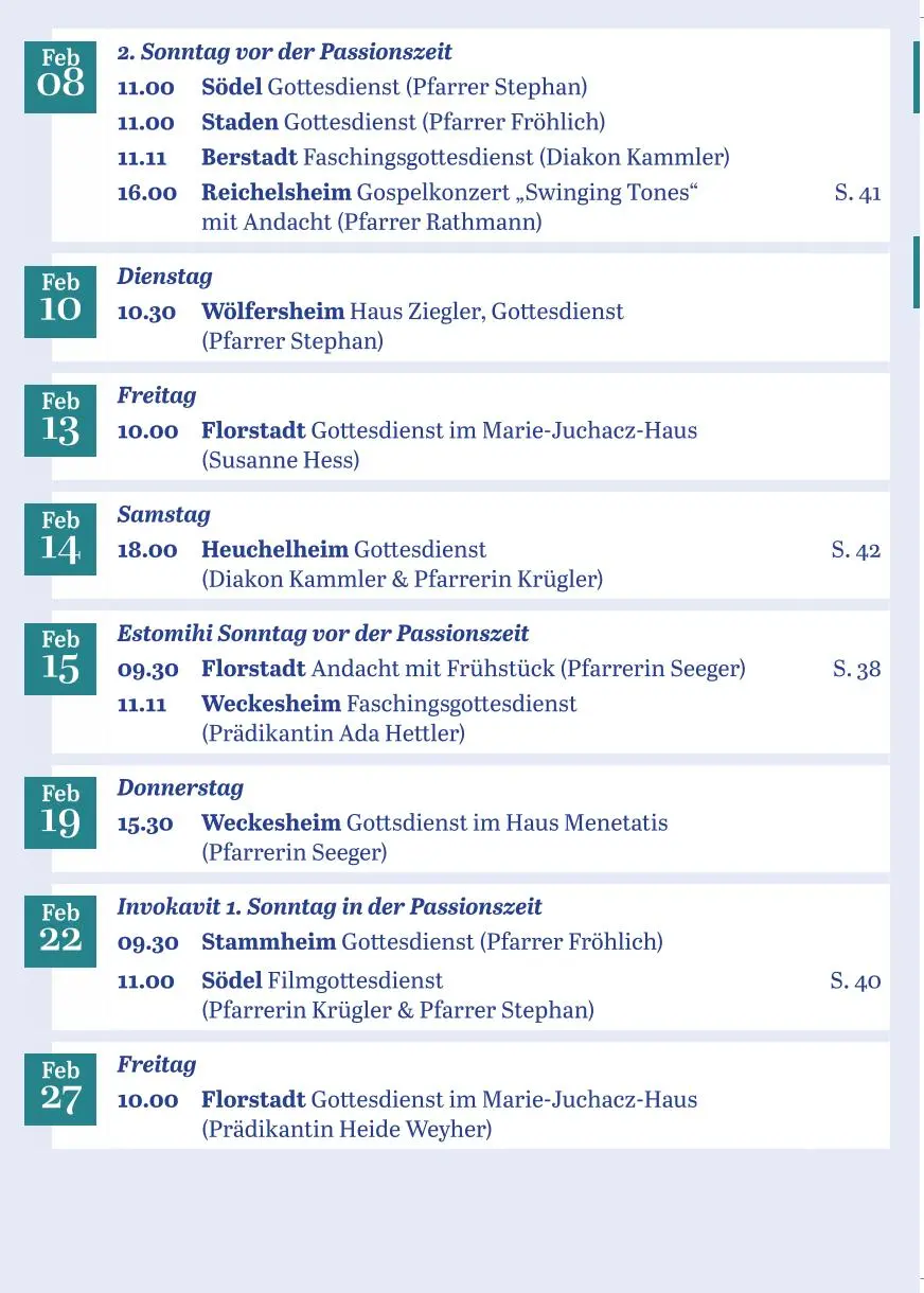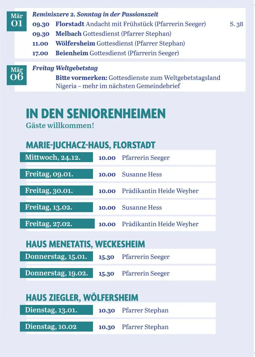 Gottesdienste von Dezember 2025 bis Februar 2026