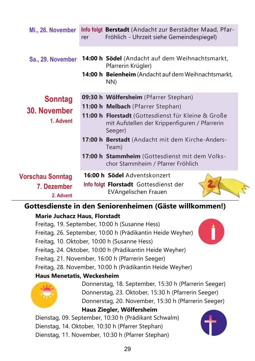 Gottesdienste im Ev. Nachbarschaftsraum Mittlere Wetterau von September bis November 2025
